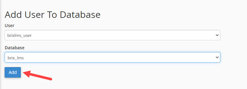 Now you should assign the user to the create database. Select the created database and the related user and click on the “Add” button. This process might be done automatically on some control panels such as “Direct Admin”.