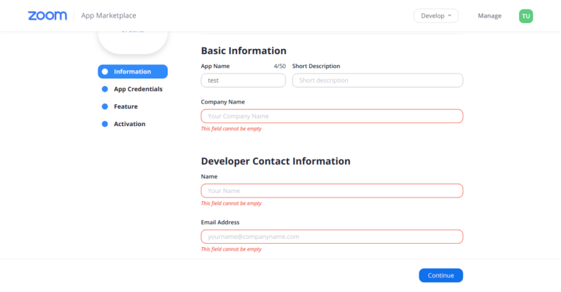 - In the next step, Add information about your app, such as a short description and developer contact information (name and email address required for activation).